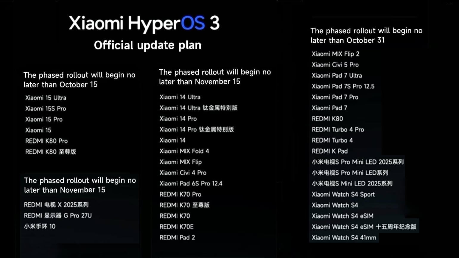 - Date – the approximate release date of HyperOS 3.0 based on Xiaomi’s official schedule.